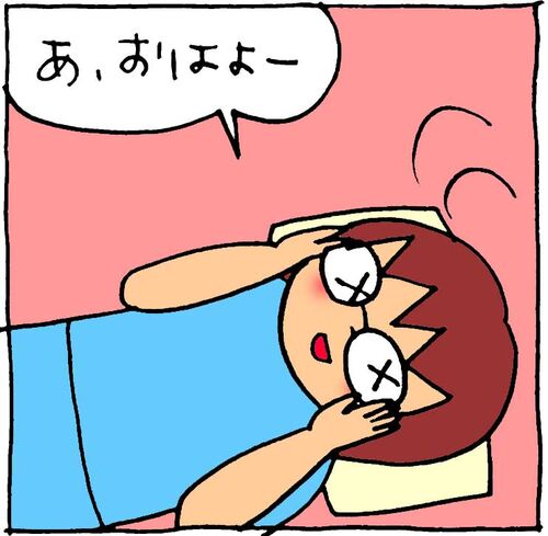 いよいよ今日から新学期が始まったponちゃんですが、夏休みは我が家でのんびり遅くまで寝ていました。 「おはよー、お母さんはもう仕事に行くね」と声をかけたら、 「おはよー」と言ってメガネをかけて… また寝たので、なぜなのか聞きました。「なんで寝るの…